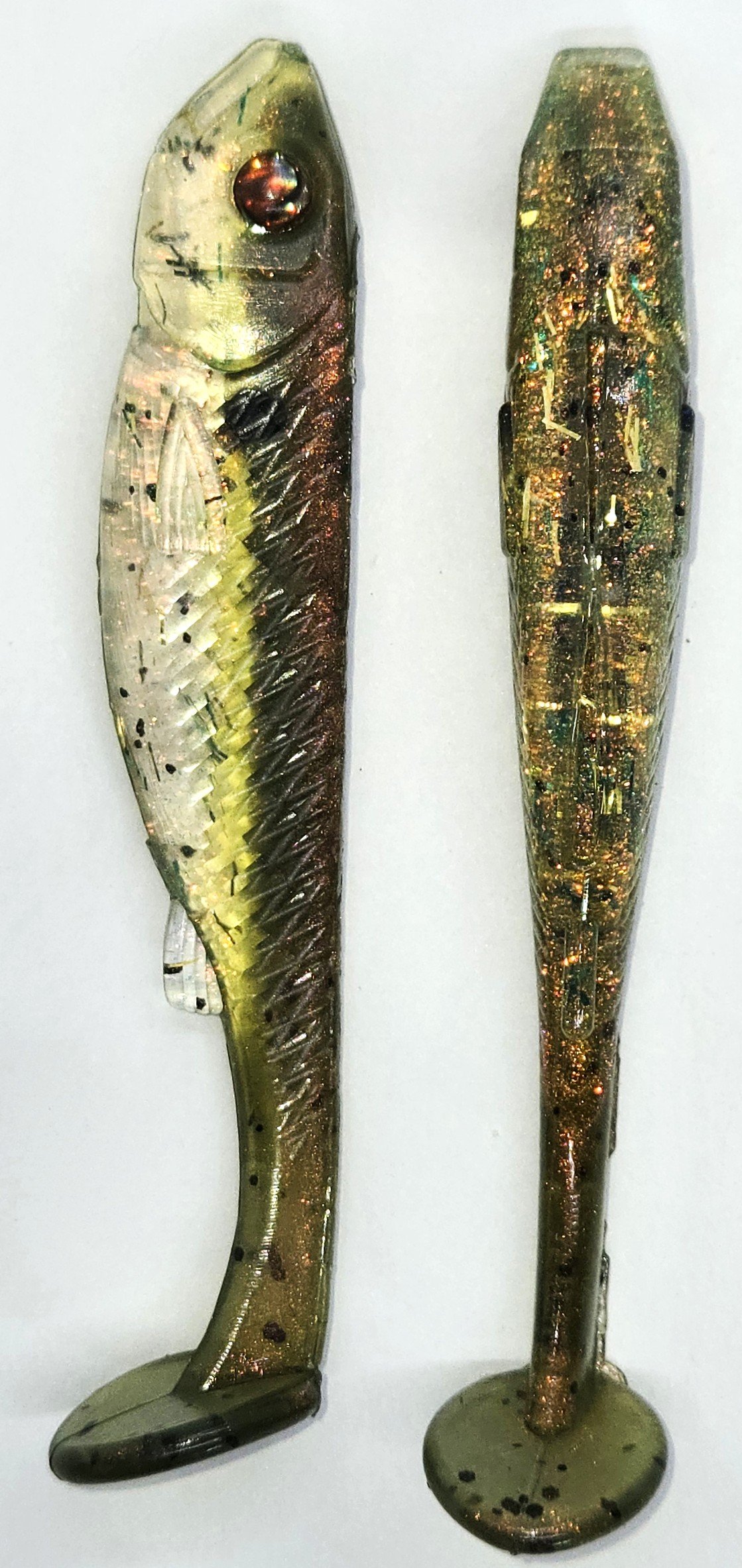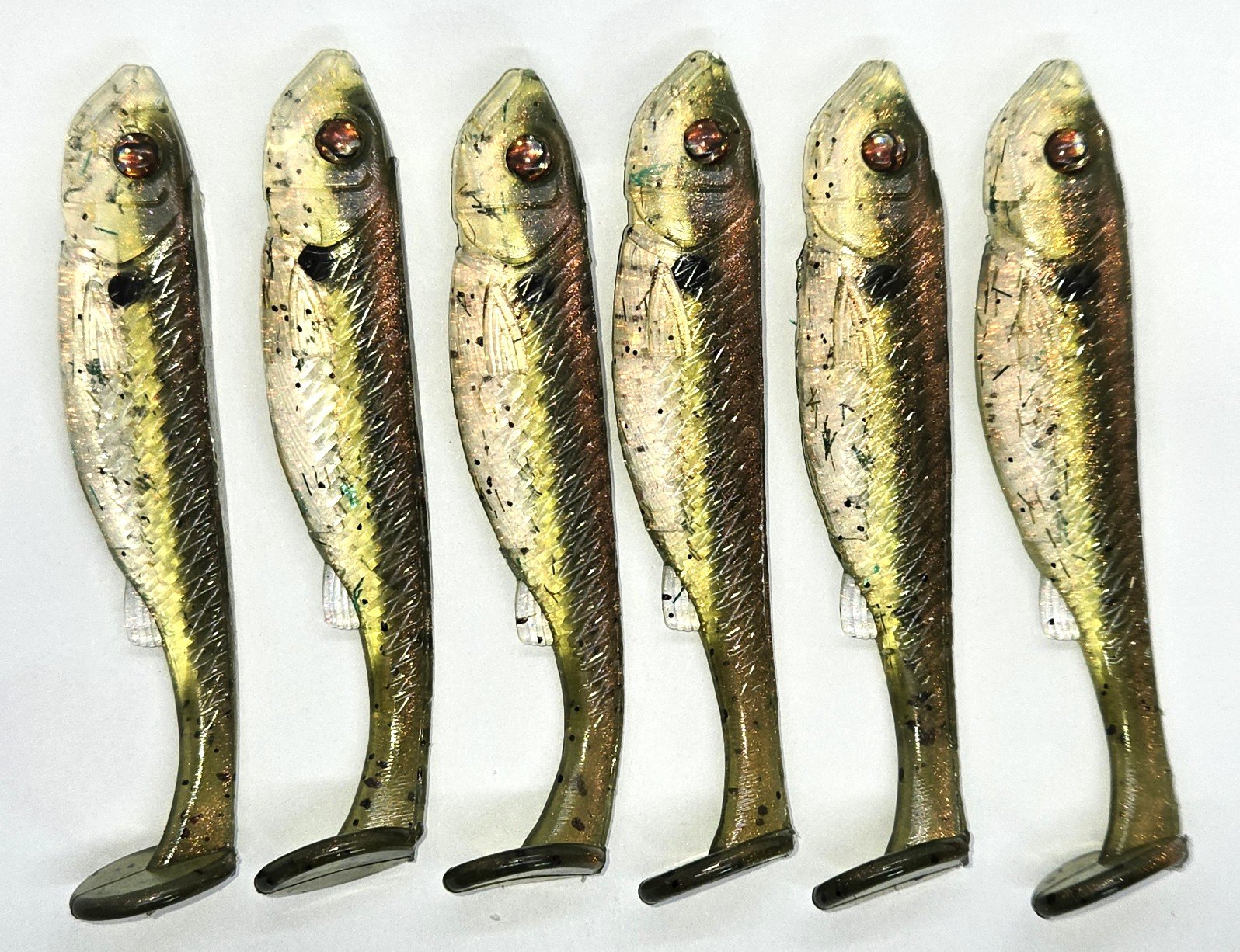 These 4" Swimbaits are all hand poured with only the finest materials available. They come 6 to a pack. They are best used on a #4 swimbait hook weighted, but can also be rigged weightless.