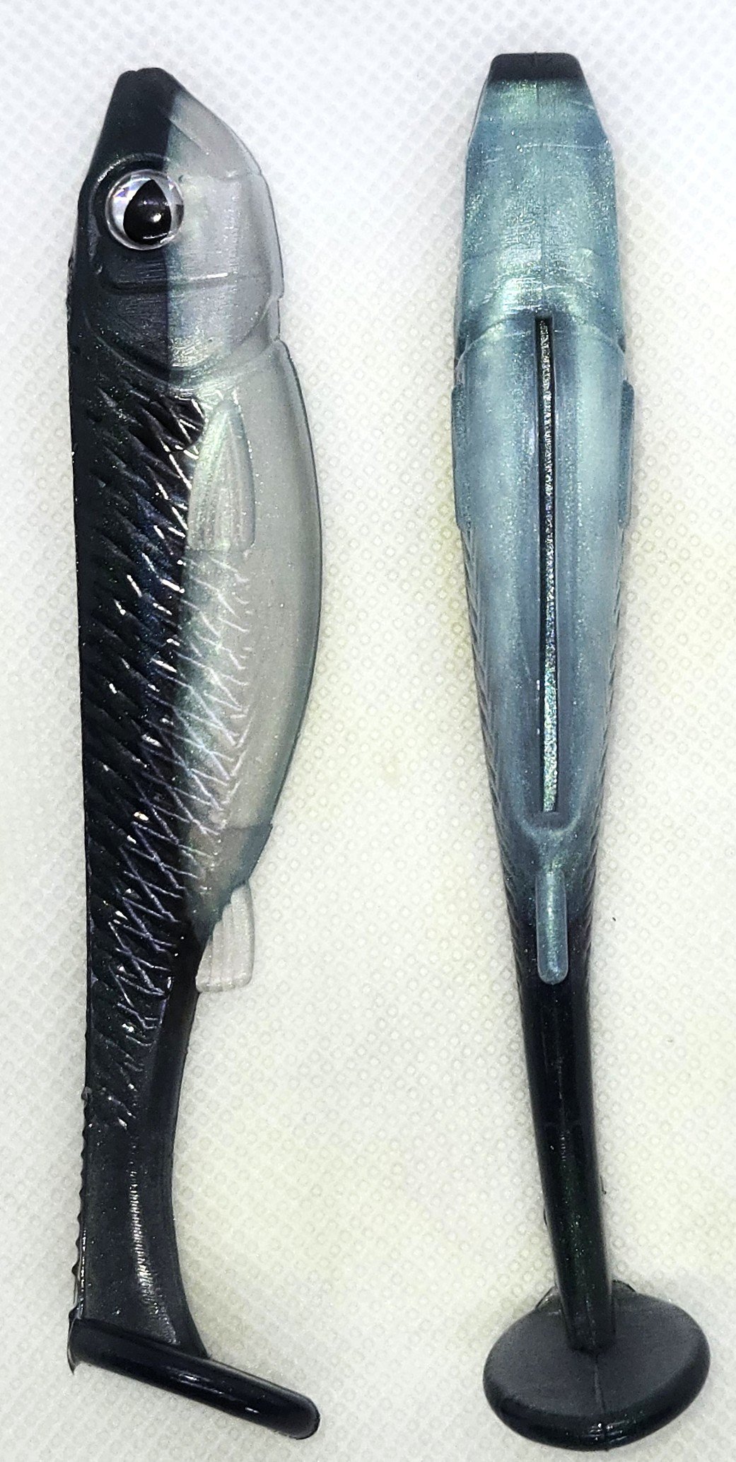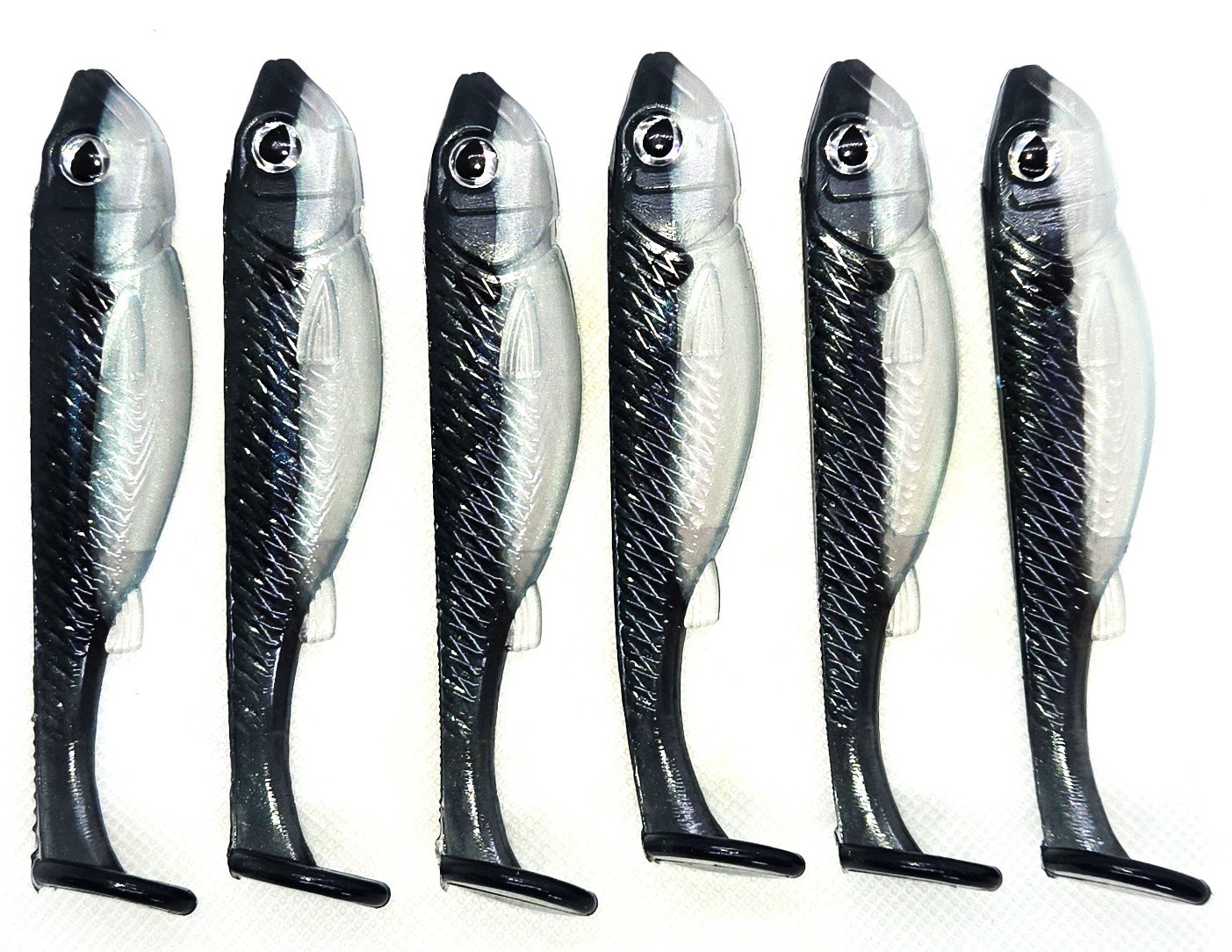 These 4" Swimbaits are all hand poured with only the finest materials available. They come 6 to a pack. They are best used on a #4 swimbait hook weighted, but can also be rigged weightless.